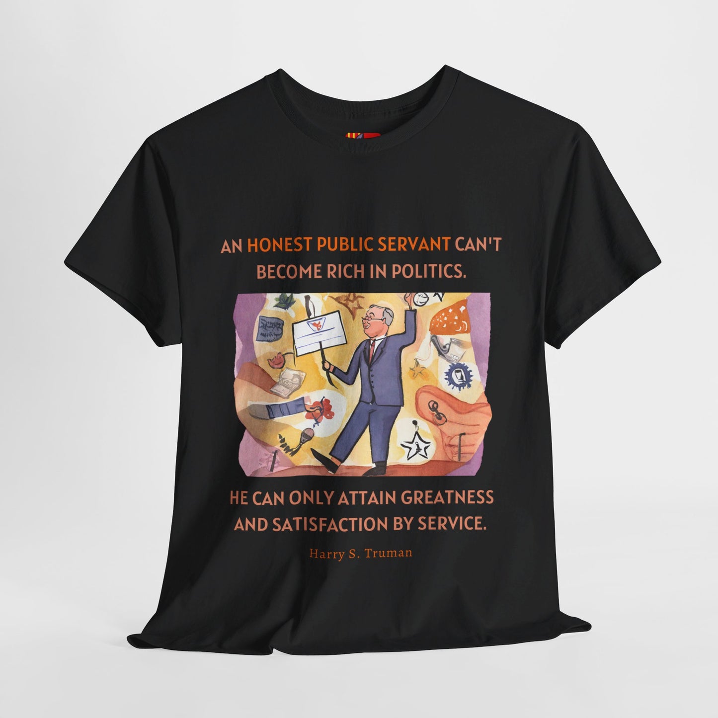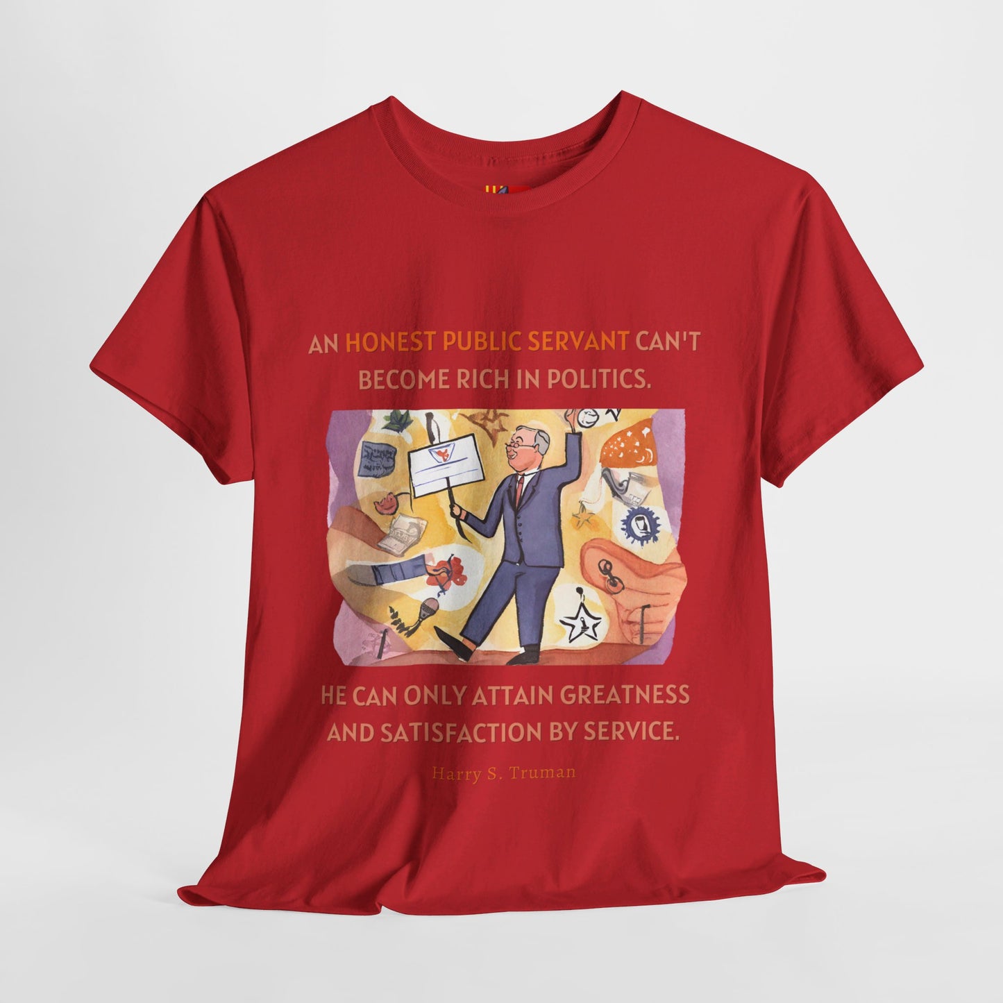 An honest public servant can't become rich in politics. He can only attain greatness and satisfaction by service. AEN0269 Harry S. Truman